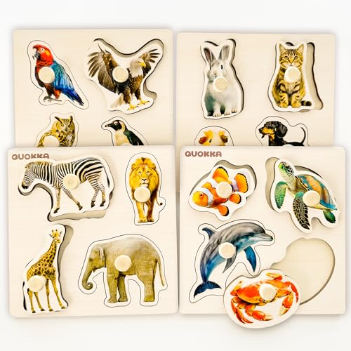 QUOKKA Puzzle Bois Enfant 1 2 3 Ans - 4 Jeux Montessori en Bois avec Animaux Réaliste- Bebe Puzzle Enfant 18 Mois - Jouet Éducatif Cadeau pour Garçons et Filles 2 3 4 Ans