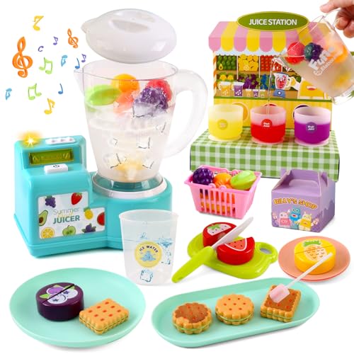 Varrotoy Accessoires Cuisine Enfant, Jouet Presse-Agrumes Enfant avec Fruits à Découper & Aliments Magiques à Changement de Couleur, Jouet d’Imitation Regalo pour Fille 3 4 5 Ans