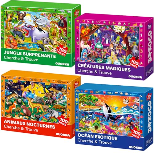 QUOKKA Puzzle Enfant 4 5 6 Ans - 4x100 Pièces Puzzle Cadre pour Garçons et Filles 7 8 Ans - Cherche et Trouve Jeux Éducatif La Vie Nocturn - Cadeau Jouet pour Enfant de 6 à 10