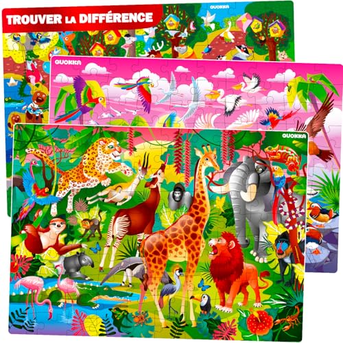 QUOKKA Grand Puzzle 100 Pièces Enfant 4 5 6 Ans - Lot de 3 Puzzle Animaux Enfant 6 7 8 Ans - Jouet avec d'Afrique et Park Animaux et Oiseaux - Jeux Éducatif Cadeau pour Garçons et Filles