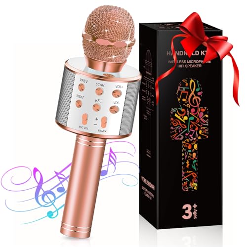 GeschenPark Jouet Fille 3-12 Ans, Micro Karaok sans Fil Jouet Enfant, Microphone pour Enfant Cadeau Fille - Cadeaux de Noël
