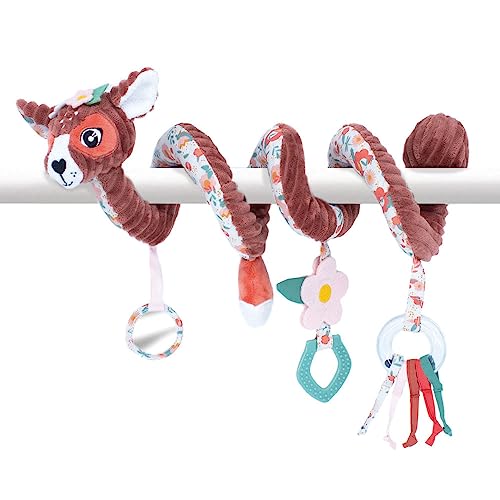 LES DEGLINGOS - Spirale d’activités Melimelos la biche - jouet d’éveil pour bébé avec activités sonores et tactiles - 1 pièce - Terracotta - 40cm déployé