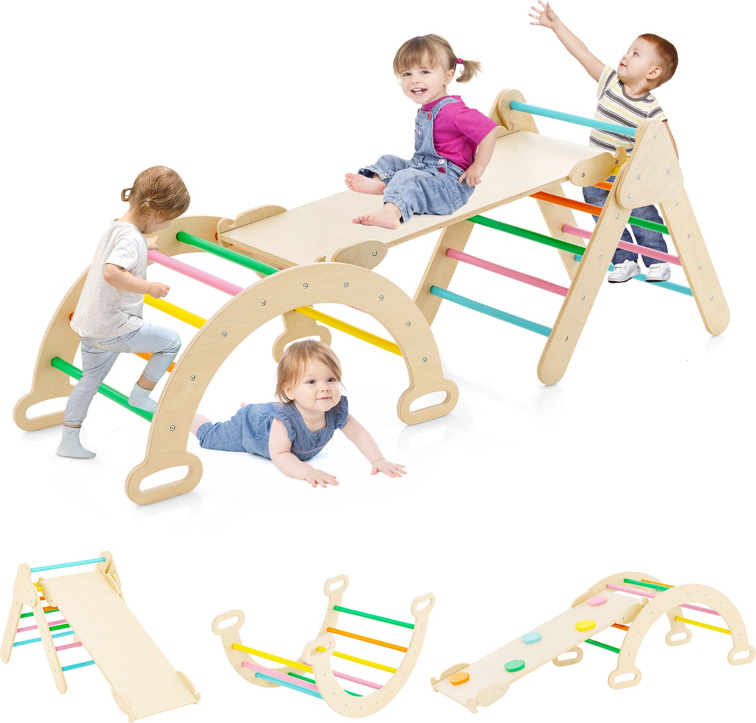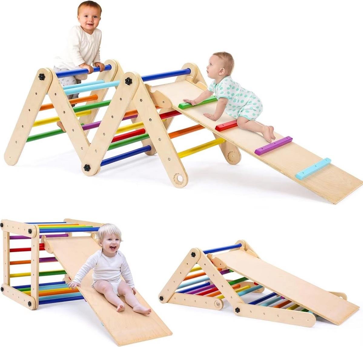 Ensemble triangle d'escalade 3 en 1 DREAMADE pour enfants, jouet d'escalade triangulaire avec arche et toboggan, pour les enfants à partir de 1 an, poids maximal supporté : 50 kg