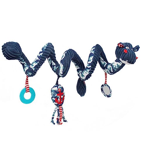 LES DEGLINGOS - Spirale d’activités Hippipos l'hippopotame - jouet d’éveil pour bébé avec activités sonores et tactiles - 1 pièce - Bleu - 40cm déployé