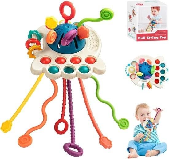 Jouet sensoriel Montessori pour bébé, 1 an, Jouet sensoriel pour garçon ou fille, cordon de traction en silicone, jouet interactif pour les jeunes enfants de 6 à 18 mois