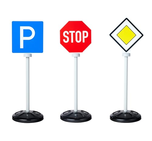 Lot de 3 Panneaux de signalisation Big pour Enfants (69 cm chacun) – Lot de 3 Panneaux de Rue avec 5 Panneaux de signalisation pour Jouer et Apprendre pour Les Enfants à partir de 1 an – Jouet pour