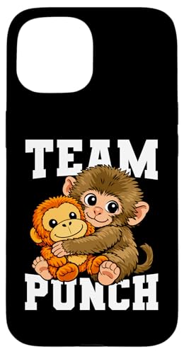 Mignon bébé Macaque Tenant Peluche Jouet Japonais Singe Punch Coque pour iPhone 15
