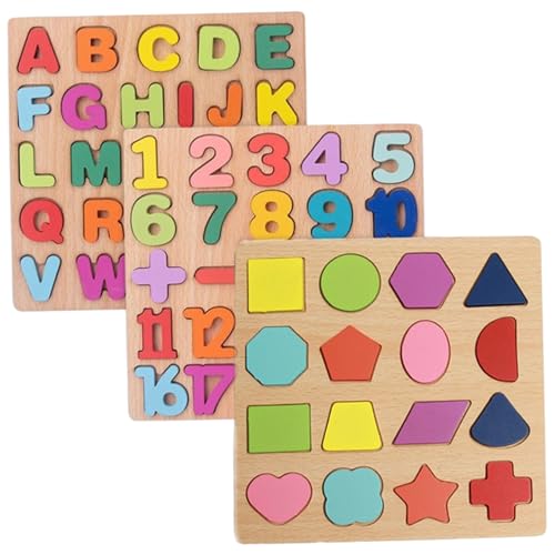 MOUNTTU Puzzles en Bois 3 pièces, Puzzle de Formes, Alphabet et Chiffres, activités éducatives préscolaires, Jouets pour garçons et Filles de 1, 2, 3, 4 5 Ans, Puzzles en Bois pour Tout-Petits à