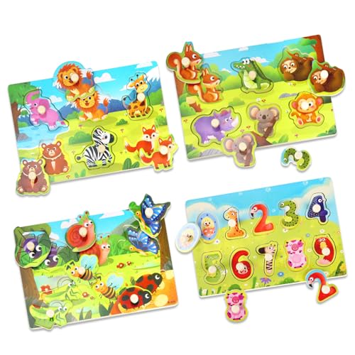 4 Pcs Puzzles en Bois pour Enfants, Animal Montessori Puzzle Jouets, Jouet Éducatif pour Bébé D'âge Préscolaire, Apprentissage Tout Petits Puzzle Jouets Filles Garçons 1 2 3 Ans