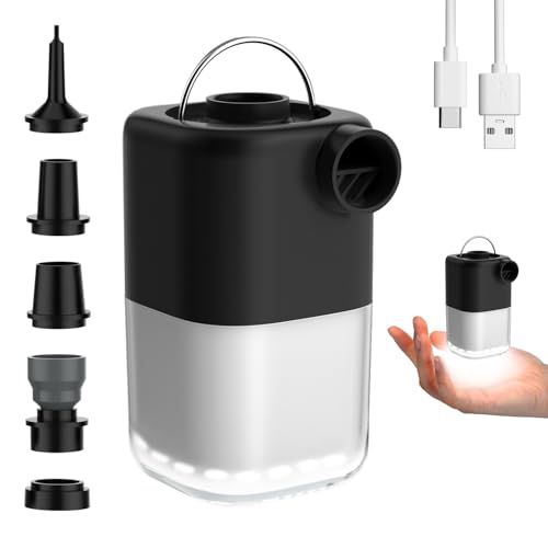 Pompe électrique Portable 4000Pa, Pompe à air électrique 3000mAh Rechargeable avec Camping Lampe, Peut Gonflage et Dégonflage, pour Matelas Gonflable/Jouets de Piscine/Bouée de Sauvetage, Noir