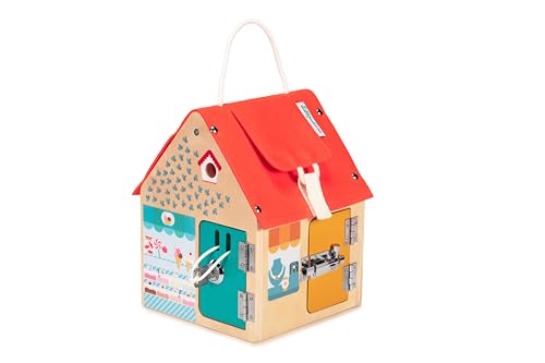 LILLIPUTIENS - Maison d’Apprentissage Multi-Fermetures en Bois - Jouet éducatif en Bois avec 6 systèmes de Fermetures - Clé, Scratch, loquet, Crochet,... - Motricité Imagination - dès 3 Ans - 83263