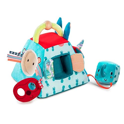 LILLIPUTIENS - Miroir d'Activités pour Bébé - Cube D'Éveil Safari en Tissu Doux - Triangle Multiactivités - Jouets D'Éveil Bébé - Dès 3 Mois - 34cm - 83562
