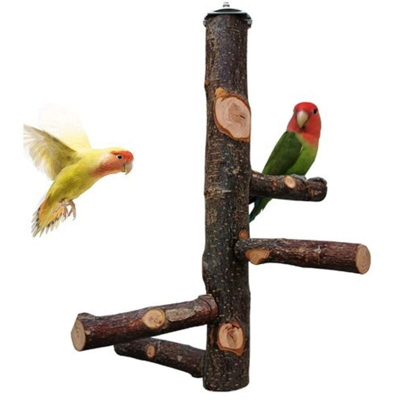 Joody Perchoir pour Cage de Perroquet Jouets pour Perruche Perchoir en Bois Naturel pour 3 ou 4 Petits ou Moyens, Cacatoès, Conure, Perruche, Oiseau d'amour, Pinson