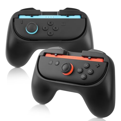 Lot de 2 poignées compatibles avec Switch 2 Joy-Cons, confort amélioré et accès aux boutons d'épaule, facile à installer, accessoire de jeu parfait (noir)