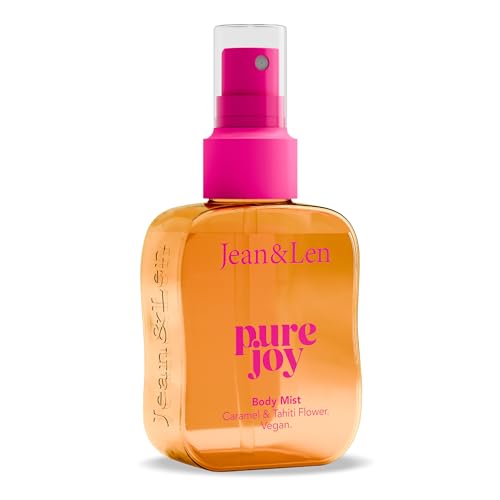 Jean & Len Spray pour le corps Pure Joy, parfum chaud et ensoleillé à la fleur de Tahiti, coco & caramel, inspiré de l'été brésilien, avec panthénol & extrait de fleur de Tahiti, vegan, 100 ml