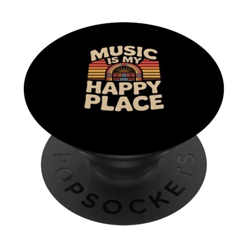 Music is My Happy Place Jukebox drôle rétro PopSockets PopGrip Adhésif