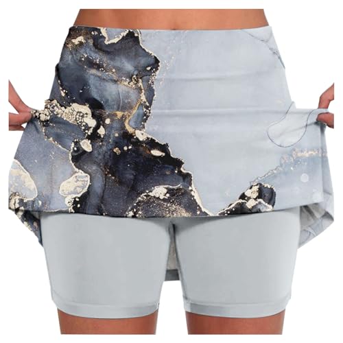Générique Jupe Blanche Femme - Jupe Élégante pour Femme Femmes Loisirs Fitness Sport Cravate Teint imprimé Double Couche Jupe Pantalon Poche Demi-Jupe