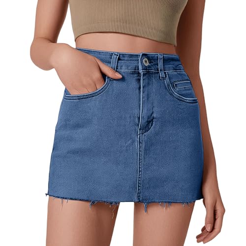 Générique Jupe Été Femme - Jupe Blanche Femme Jupes Courtes Moulantes en Jean pour Femmes Taille Haute décontractées délavées Extensibles avec Poches