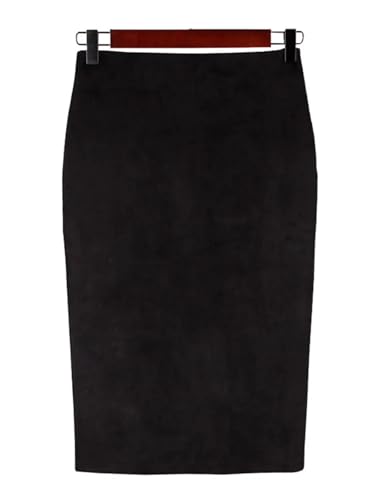 Générique Jupe Crayon Femme Jupe crayon mi-longue en daim multicolore for femme, jupe moulante basique for printemps et été(Black,S)