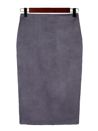 Générique Jupe Crayon Femme Jupe crayon mi-longue en daim multicolore for femme, jupe moulante basique for printemps et été(GRAY,XL)