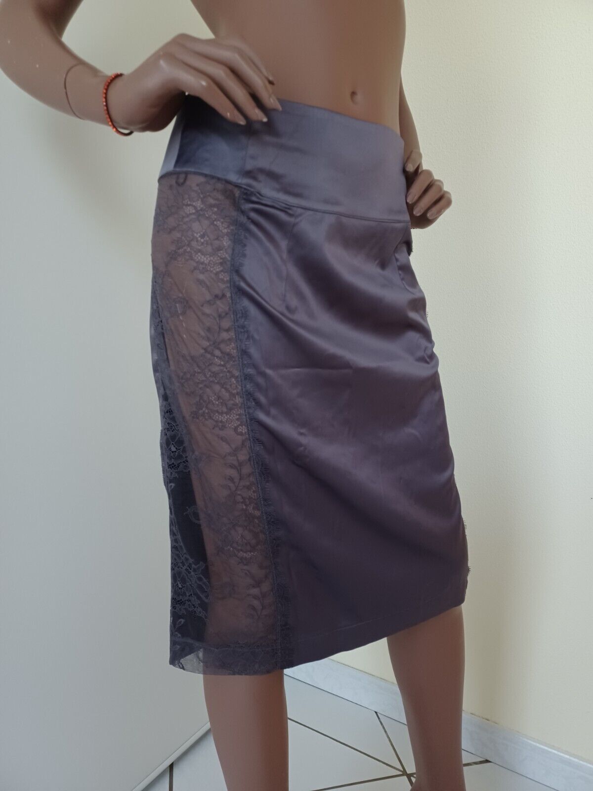 MAISON CLOSE JUPE CRAYON EN SATIN ET DENTELLE TAILLE XL MODELE VILLA SATINE