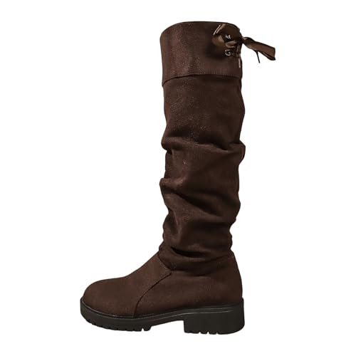 Générique Bottes mi mollet bout rond et talon épais pour femme, avec ceinture réglable Jupe Tricote Hiver Longue (Coffee, 42)