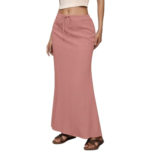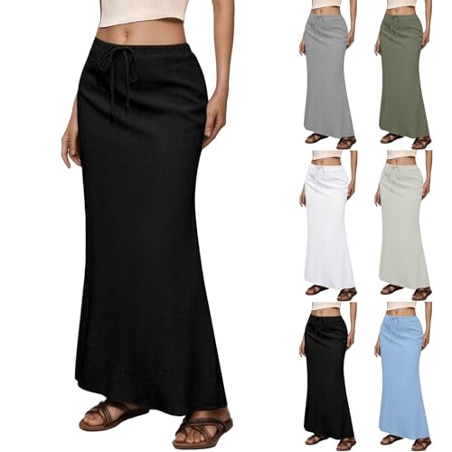Generisch Jupe A Ligne Femme Été Automne Longue Élégante Festive Ligne A Jupe avec Cordon de Serrage Fente Coupe Slim Taille Haute Hiver Décontractée Couleur Unie Jupe Crayon