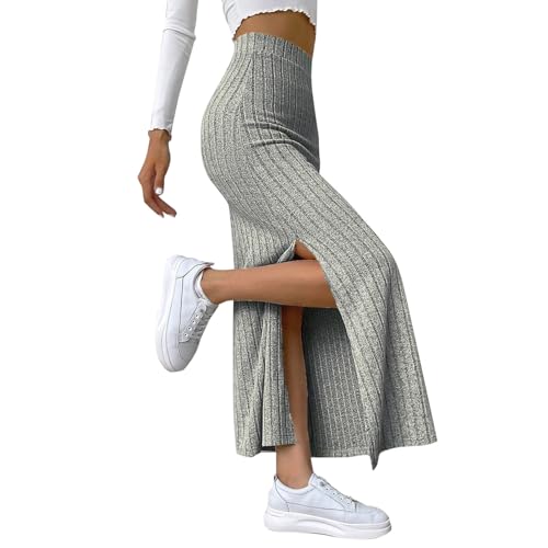 Jupes Femme Tricot Côtelé, Jupe Longue Droite-Jupe Hiver avec Fente Chaude Taille Haute élastique Jupe Loisirs Jupe d'automne Maxi Rétro Jupes Chic Grâce Charmant
