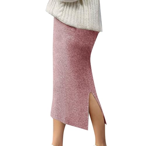 Generisch A Lignes Jupe Automne Jupes pour Femme Longue Élégante Festive avec Cordon de Serrage Fente Coupe Slim Fit Taille Haute Hiver Décontractée Uni Jupe Crayon