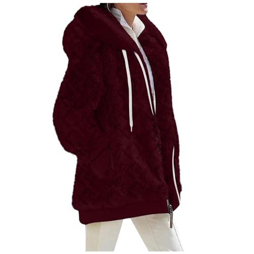 Veste en peluche pour femme - Doublée en polaire - Veste de survêtement épaisse en velours côtelé - Longue veste douillette - Veste à capuche - Veste en peluche surdimensionnée