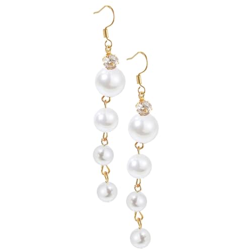 ifundom Boucles Oreilles Longues Perles Blanches pour Femme Élégantes et Faciles à Assortir avec Robes Jupes Shirts