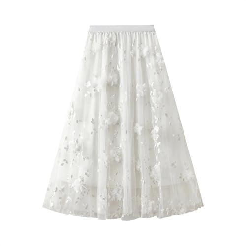 AAIXXIZAO Mini Jupe Crayon Courte Sexy Jupe en Maille Brodée Florale pour Femme Fleur Jacquard Casual Taille Haute Jupe Longue Swing Tulle Jupes Streetwear Taille Unique Blanc