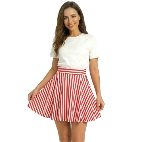 Costume de pop-corn pour femme, jupe rouge et blanc, rayée, lignes A, jupe rockabilly, taille haute, costume de cirque, swing, longueur genou, jupes, loisirs, cocktail, vintage, pour carnaval, cirque