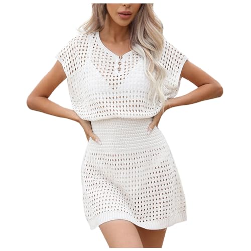 Générique Robe De Plage Femme Ete,Jupes De Plage Et Chemisiers De Plage Bordure EuropéEnne Et Style Robes TricotéEs Crochet Creux (White, M)