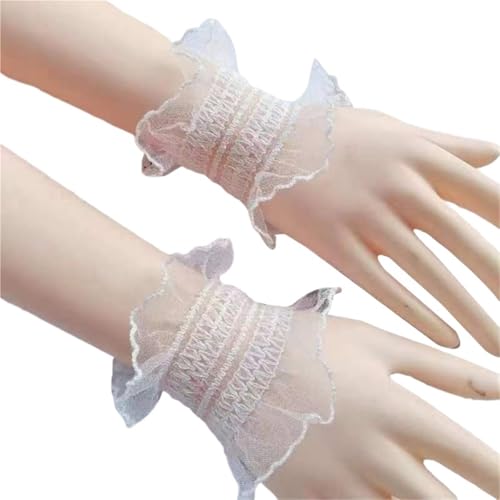 WUYXTO Lot de 2 paires manchettes élastiques à volants for femme, décorations jupes et pulls, en dentelle Pour Robe(White)