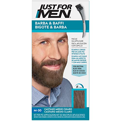 Just For Men Formule, Brun Pâle Moyen, Coloration Moustache Et Barbe Homme, Élimine Les Poils Blancs Pour Un Résultat Plus Épais, Avec Un Pinceau Applicateur, Rapide Et Facile, M30