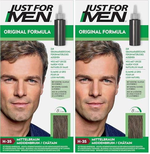 Just For Men Gel Colorant, Teinture Cheveux Châtain, Coloration Cheveux Homme, Couvre Les Cheveux Blancs Et Restaure La Couleur D'Origine Pour Un Résultat Naturel, Rapide Et Facile, H35 (Lot de 2)