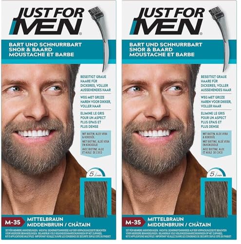 Just For Men Formule, Coloration Moustache Et Barbe Châtain, Élimine Les Poils Blancs Pour Un Résultat Plus Épais, Avec Un Pinceau Applicateur, Rapide Et Facile, M35 (Lot de 2)