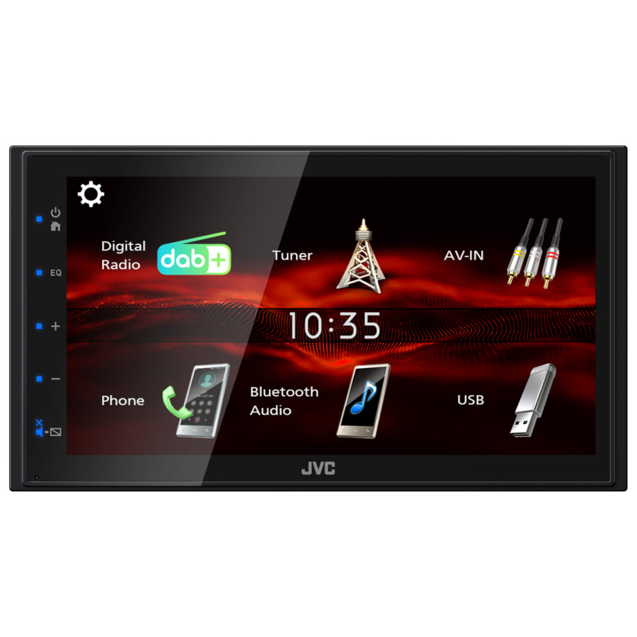 JVC KW-M595DBT – Récepteur Mono-récepteur WSVGA (1024 x 600 px) avec Dab+/FM, CarPlay, Android Auto, Apple & Android USB, Bluetooth, écran Tactile capacitif, DSP, 4 x 50 W, 3 pré-Sorties 2,5 V