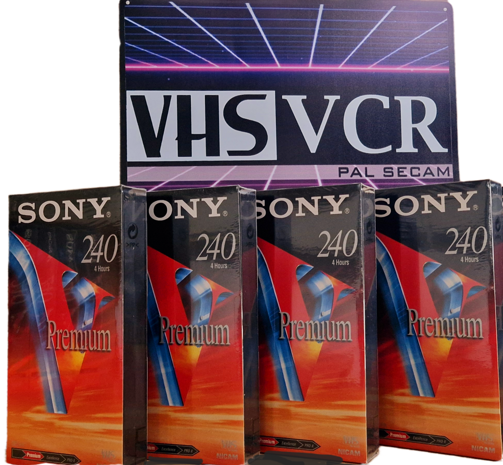LOT X4 Cassettes Video VHS PREMIUM SONY 240 NEUVE SOUS BLISTER K7 MAGNÉTOSCOPE