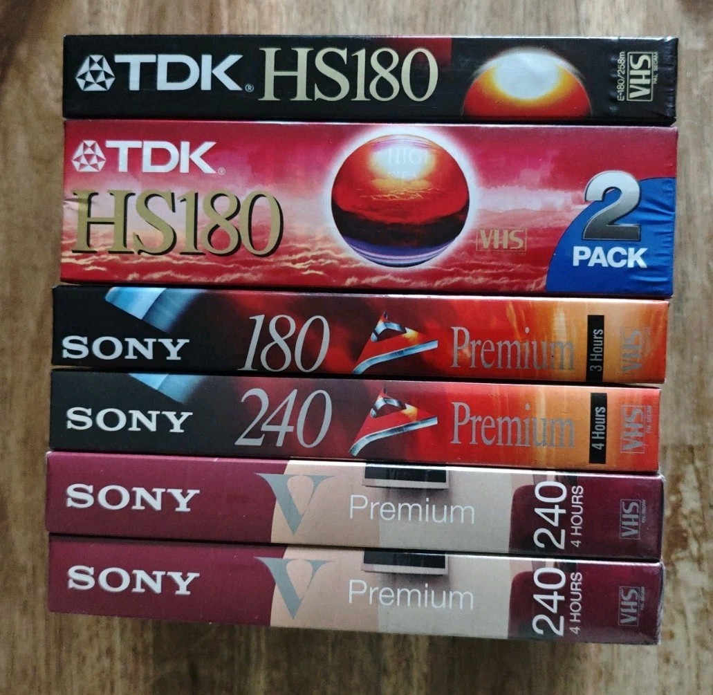 Lot 7 Cassette VHS Vierge SONY PREMIUM 240 / 180 TDK 180 - K7 Video Neuf .
