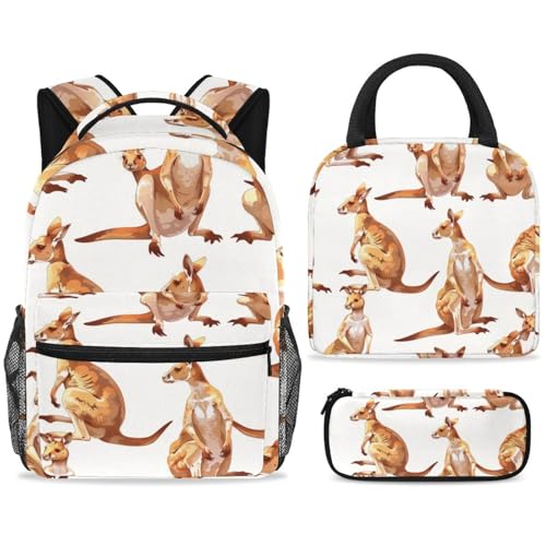 ewndhtse Ensemble sac à dos d'école, sac à déjeuner et trousse à crayons, sac à dos d'école, sac à dos de voyage décontracté pour adolescents, filles, garçons, primaire, junior moyen, animal kangourou