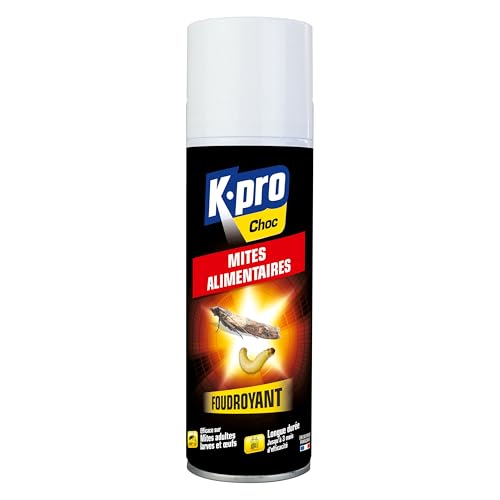 K.PRO Aérosol Foudroyant Contre les Mites Alimentaires - 250 ml - Idéale pour éliminer les Mites Alimentaire - Efficace sur les Mites Adultes, les Larves et les Oeufs - Longue Durée