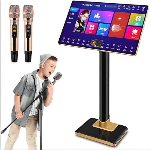 Karaoke Machine with Lyrics Display Touch Screen, WiFi, Mobile Screen Projection. Bluetooth Speaker with 2 Microphones, Outdoor Party, Family Gathering, Portable Karaoke Singing Machine
