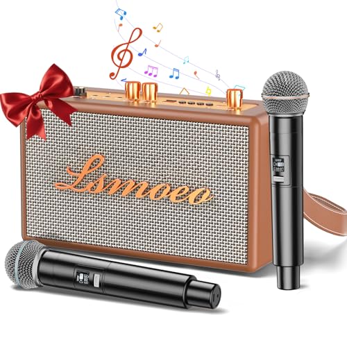 Machine de Karaoké avec 2 Microphones sans Fil pour Adultes Enfants,Karaoke Adulte Prise en Charge de l'extension Microphone à Quatre canaux,pour Les fêtes à la Maison, Les Cadeaux Vintage