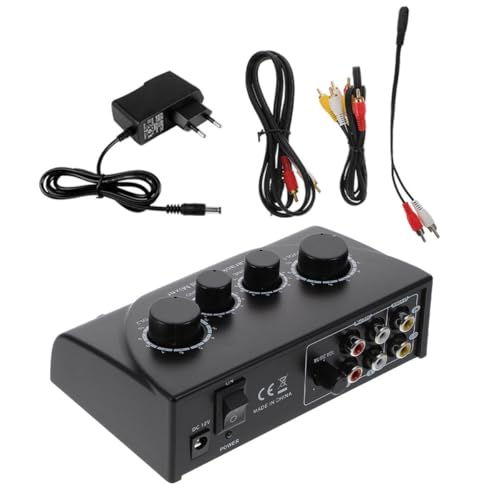 Kisangel Mixeur Karaoké Professionnel à Double Entrées Microphone avec Câble, Console de Mixage Audio Ktv Compacte en Abs Noire, Accessoire de Fête pour Dj et Karaoké, Compatible Ac220v