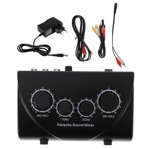Générique Mixeur de Son Karaoké Professionnel Noir avec Double Entrée Microphone Filaire, Câble Inclus, Compact et Léger, Adapté pour Soirée Karaoké et Mixage Audio Pc, Fournitures Ktv