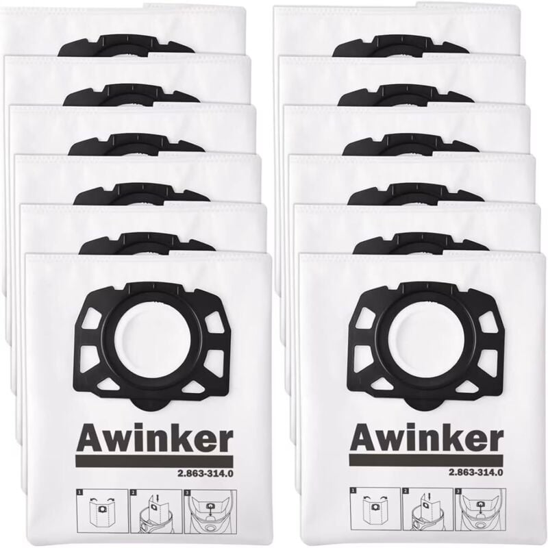 Lot de 15 sacs filtrants pour aspirateur pour Karcher 2.863-314.0 KFI 357 KA 40 WD2, Plus WD3 SE4002