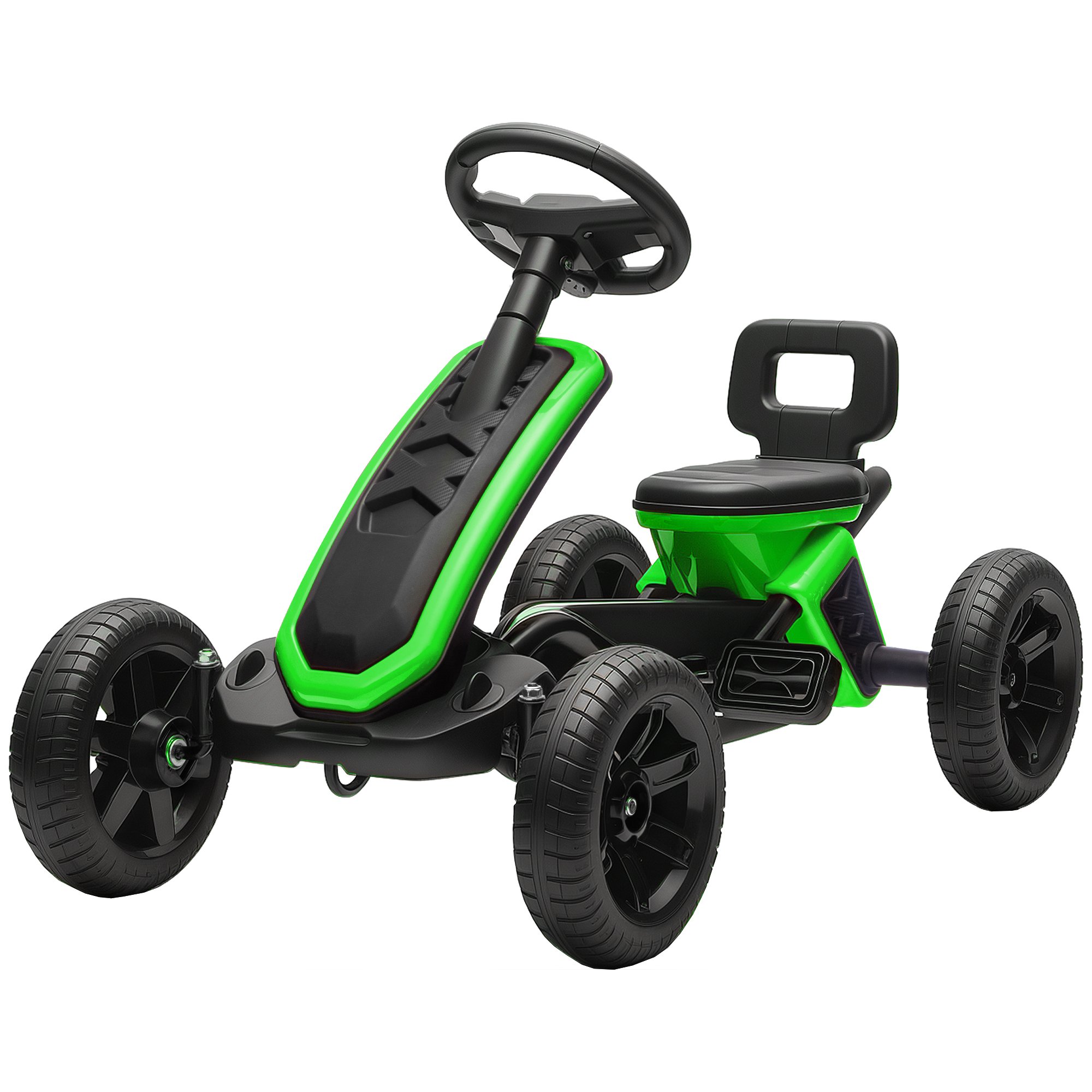 HOMCOM Vélo et véhicule pour Enfants Kart à pédales siège réglable Frein Manuel Roues AR EVA Acier Vert Noir