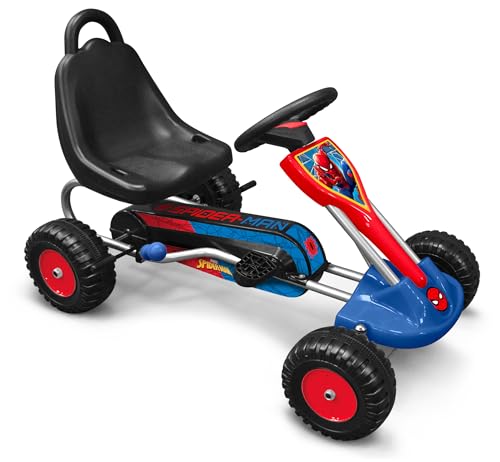 Go Kart à pédales Spiderman 89cm x 52cm SM250001, Bleu-Vert-Gris-Noir